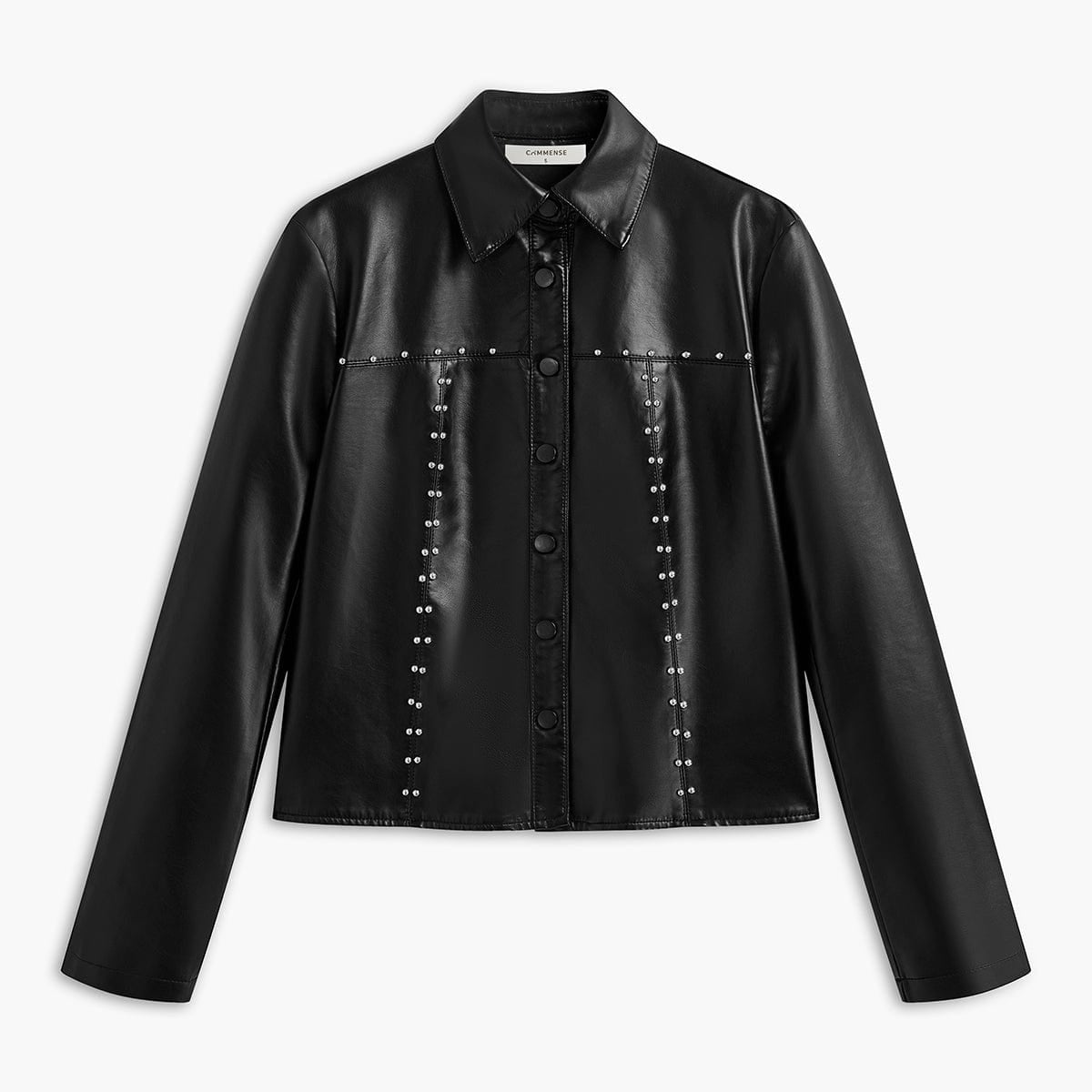 Amelia | Zwarte Kunstlederen Jas met Studs