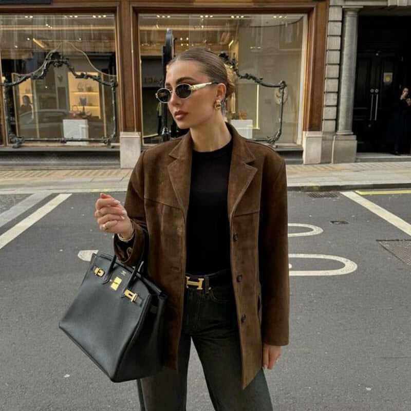 Merle | Klassieke Blazer van Suède-look in Bruin