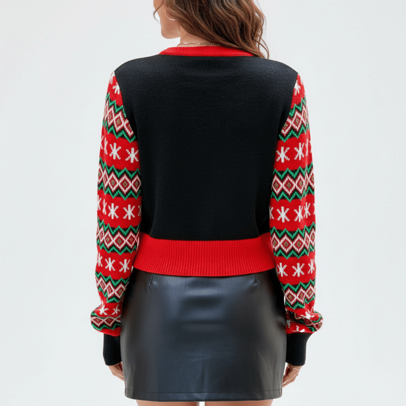 Dames Cropped Jacquard Gebreide Trui met Feestelijke Graphic