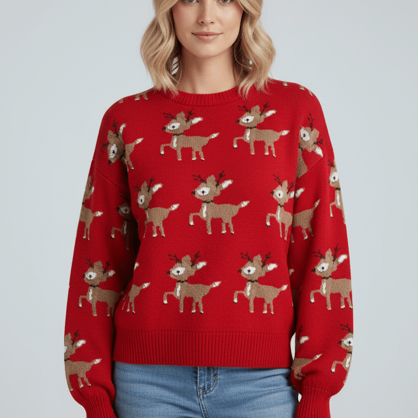 Dames Rendier Gebreide Trui | Gezellige Pasvorm en Feestelijk Winterontwerp