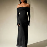 De Alina jurk geeft elke avondgarderobe een vleugje magie. Met zijn schouderloze snit, het figuuraccentuerende ontwerp en de fijne glinsterende effect straalt deze maxijurk pure elegantie uit. De lange, transparante mouwen met uitlopende uiteinden zorgen voor een romantische uitstraling, terwijl de vloeiende stof de silhouet zachtjes omarmt.