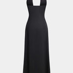 Amelia | Zwart Elegante Halterneck-Maxijurk – Tijdloze Avond-Elegantie