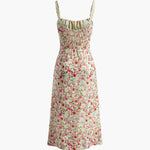 De Beatrix midi-jurk verenigt romantische vintage charme met moderne elegantie. De getailleerde snit flatteert de silhouet, terwijl het delicate bloemenpatroon zorgt voor een speelse, vrouwelijke toets. Kantbanden en een subtiele vetersluiting bij de halslijn geven de jurk een vleugje nostalgie en verfijning. Perfect voor zomerdagen, wandelingen of tuinfeesten – deze jurk straalt pure romantiek uit!