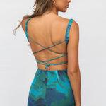 De Bettina Maxijurk verrukt met zijn verleidelijke rugvetersluiting en een elegante, vloeiende snit. De smalle spaghetti-bandjes zorgen voor een delicate, vrouwelijke uitstraling, terwijl het figuuraccentuerende ontwerp de silhouette perfect in de schijnwerpers zet. De lichte, vloeiende stoffen en het stijlvolle patroon maken deze jurk tot een ideale metgezel voor zomerfeesten, elegante diners of speciale gelegenheden.