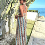 Boho Maxijurk met Retro Golfpatroon & Halter – Rugloos & Figuuraccentuerend