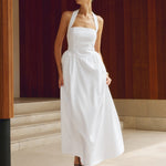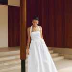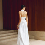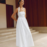 De Charlotte Halter Maxikleed verenigt klassieke elegantie met moderne lichtheid. De hooggesloten, rugloze snit zorgt voor een opwindend contrast en benadrukt de vrouwelijke silhouette. De A-lijn pasvorm met zachte plooien flatteert elke figuur en zorgt voor een stijlvolle, vloeiende beweging. Perfect voor zomerfeesten, bruiloften of elegante avondbijeenkomsten, is deze jurk een tijdloze klassieker voor veeleisende fashionista's.