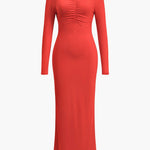 Clothilde | Elegante rugloze lange maxi-jurk met bloemdetaillering