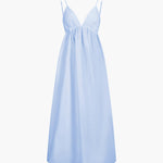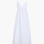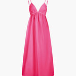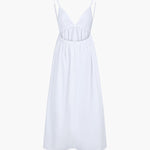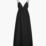 De Elena Maxi-jurk is de essentie van zomerse lichtheid en elegantie. Met zijn delicate spaghetti-bandjes en de diepe ruguitsnijding met cut-out-detail geeft het een luchtige, vrouwelijke uitstraling. De vloeiende stof zorgt voor een zachte beweging, terwijl het minimalistische ontwerp het veelzijdig draagbaar maakt – van strandwandelingen tot chique zomer evenementen.
