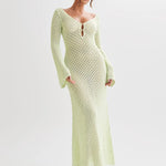 Greta | V-hals Gehaakt Maxikleed met Belmouwen – Boho-Chic voor de Zomer