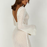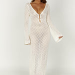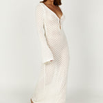 Maxi-jurk in haaklook met diepe halslijn en lange mouwen