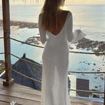 Deze figuuraccentuerende maxi-jurk in haakdesign is gemaakt voor gedurfde looks en zonovergoten dagen. Met een diepe V-halslijn, decoratieve uitsnijdingen en uitlopende mouwen zorgt het voor een sexy, tegelijk stijlvolle uitstraling – of je nu op het strand bent, op een festival of als stijlvolle resortkleding.