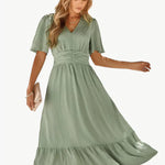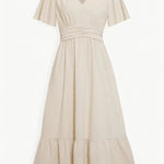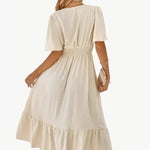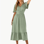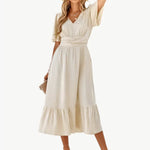 Midi-zomerjurk met V-hals en tailleaccentuering – Losse & Vrouwelijke