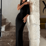 De Seraphina Satijnen Maxikleed verenigt verfijning en klasse in een adembenemend ontwerp. De edele satijnen stof zorgt voor een luxe glans, terwijl de elegante one-shoulder snit met strikdetail een vrouwelijke en stijlvolle toets toevoegt. De lichaamseigen pasvorm met vloeiende zoom benadrukt de silhouette en maakt deze jurk de perfecte keuze voor gala's, bruiloften of exclusieve avond evenementen.