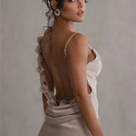 De Xenia Satijnen Maxijurk is de perfecte keuze voor elegante gelegenheden en onvergetelijke momenten. De chique watervalhals geeft de jurk een luxe uitstraling, terwijl de figuurvormende snit de silhouet flatterend omarmt. De vloeiende stof zorgt voor een adembenemende uitstraling en optimaal draagcomfort. Perfect voor bruiloften, gala's of speciale avondevenementen.