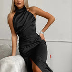 Ylva | Elegante Satin Halterjurk met Beenopening