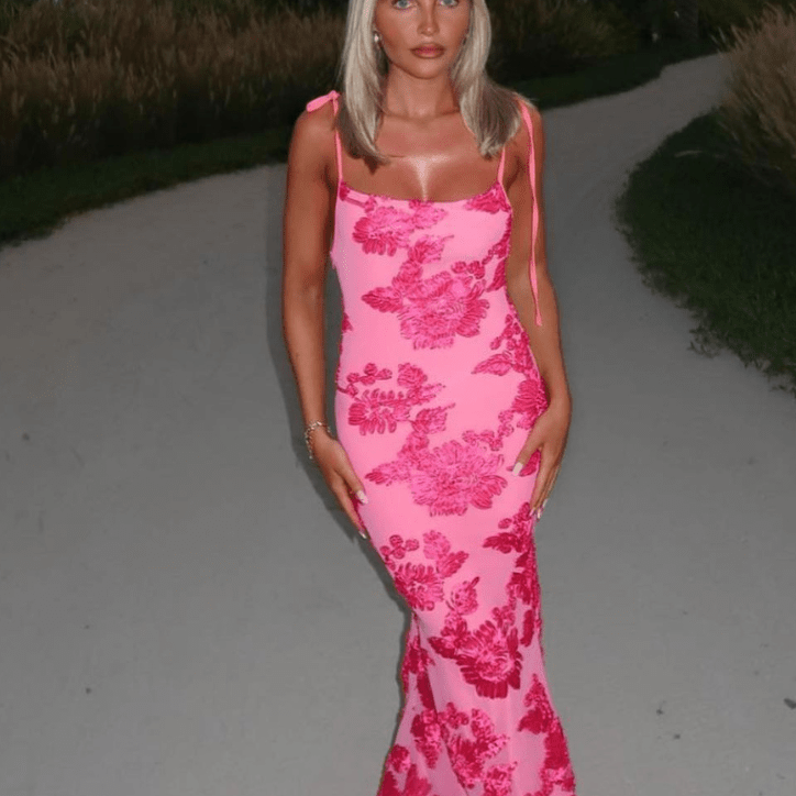 Ziska | Figuuraccentuerende Roze Bloemen Maxikleed - Elegant met Romantische Flair
