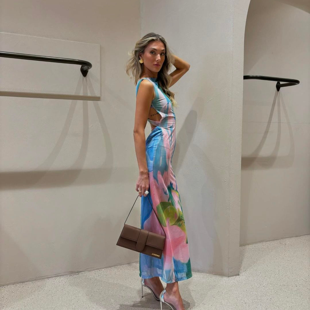 Isla | Mouwloos Maxi-jurk met aquarelprint – Kunstzinnige elegantie