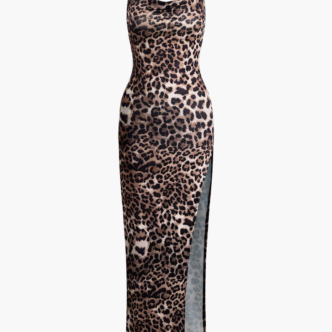 Amelie | Verleidelijk Leopard Maxikleed – Sensuele Look met Beinsplit