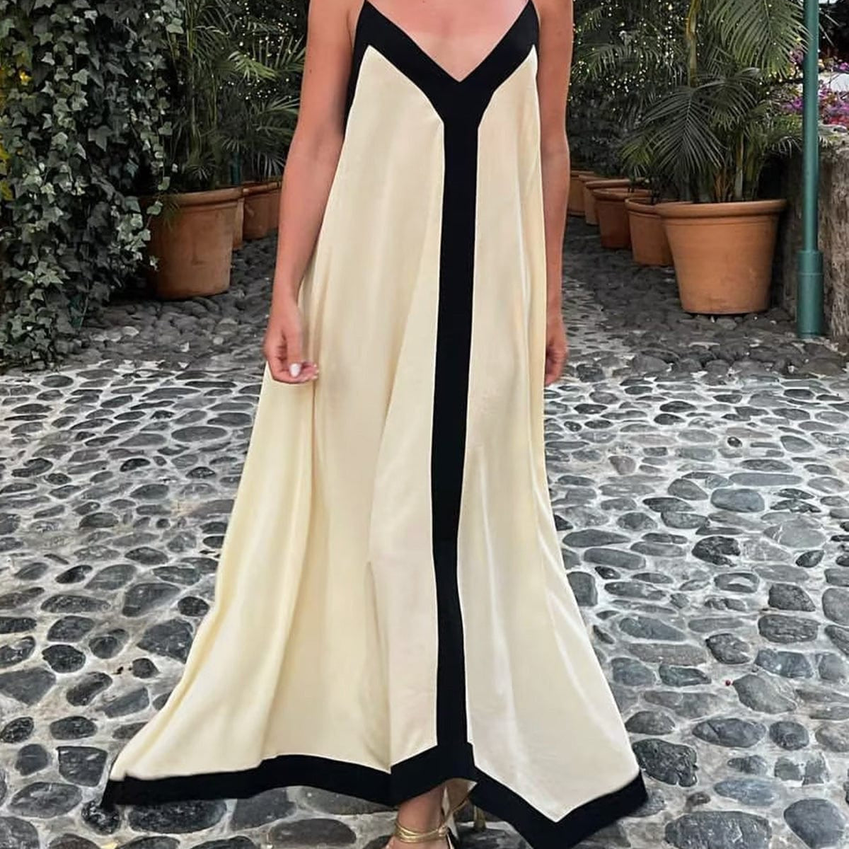 Adeltraud | Vloeiend V-hals Maxi-jurk met contrasterende details