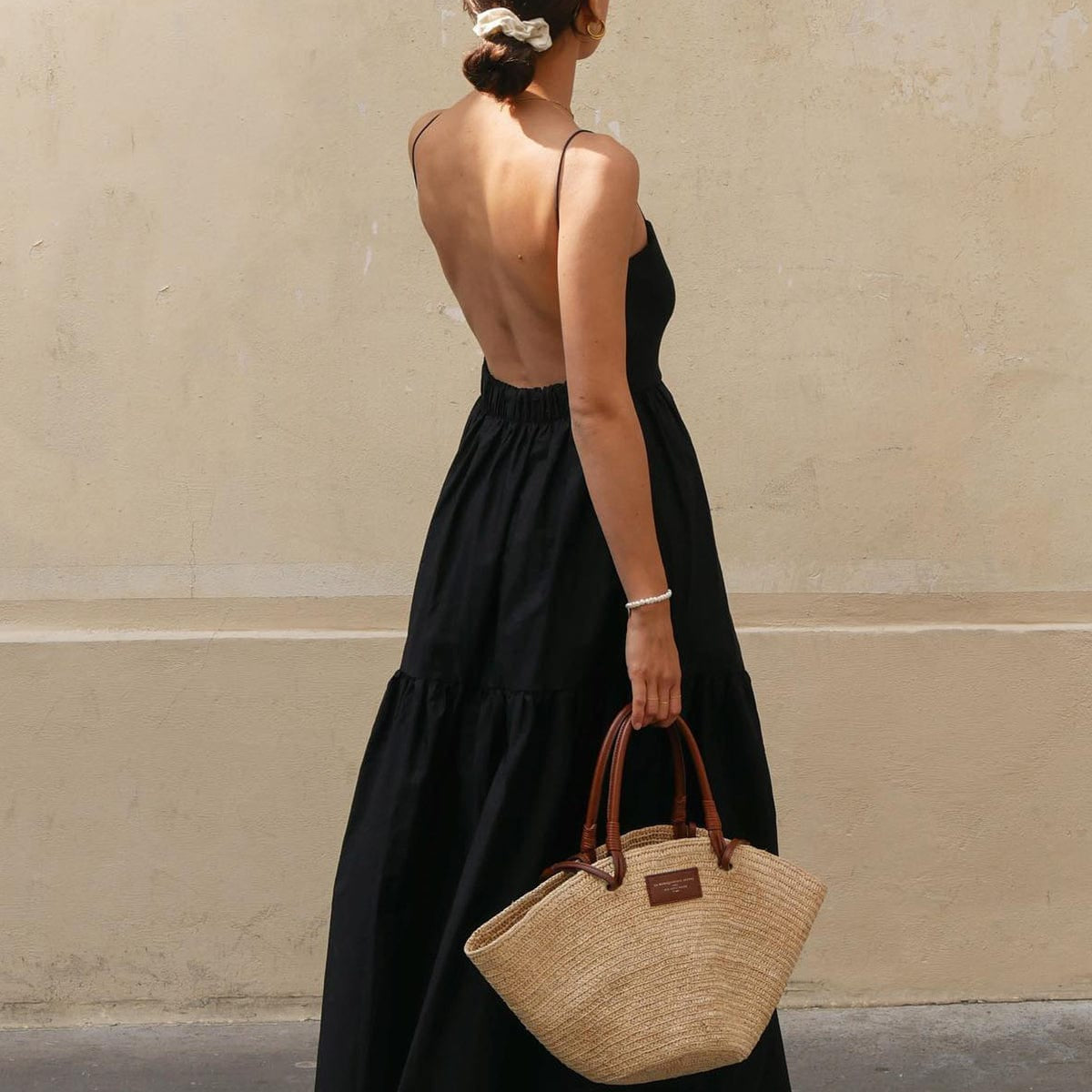 Benedikta | Mouwloze Maxijurk van Linnen met Cut-Out Detail en Spaghettibandjes