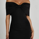 Deze stijlvolle off-shoulder minikleed is de perfecte keuze voor een elegante en vrouwelijke uitstraling. Het opvallende strikdetail op de borst geeft het kleed een verfijnde en unieke toets, terwijl de getailleerde silhouet uw rondingen op een voordelige manier accentueert. Ideaal voor feestelijke gelegenheden, partijen of diner-dates.