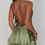Emmy | Kruz en quer Rug Spaghetti-band Mini-satijnen jurk