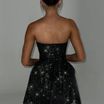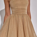 Katrina | Schouderloos Minikleed met Glitterdetails en Uitlopende Rok
