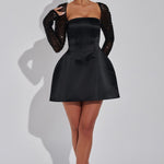Nina | Satijn Minikleed met Glanzende Lange Mouwen