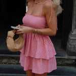 Wibke | Charmante roze-witte geruite zomerjurk