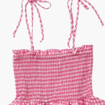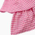 • Stijlvol ontwerp : Roze-wit geruit patroon met vrouwelijke volants-details.