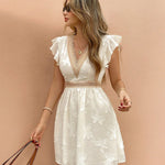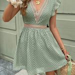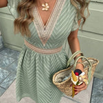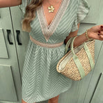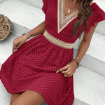 Zomerkleed met V-hals & Haakrand – Luchtig Korte Mouwen Kleed met Tailleband