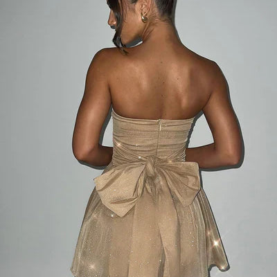 Katrina | Schouderloos Minikleed met Glitterdetails en Uitlopende Rok