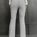 Dames broek – hoge taille slim fit met flared pijp & geribbelde stretchstof