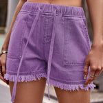 Op zoek naar luchtige en comfortabele shorts voor warme zomerdagen? Deze dames denim shorts combineren casual stijl met ultiem draagcomfort. Dankzij de elastische tailleband met verstelbaar koord sluit de short altijd perfect aan, terwijl de speelse franje-afwerking zorgt voor een trendy en zomerse uitstraling.