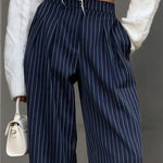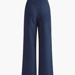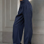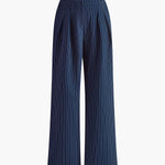 Gestreepte Plissé Pantalon Voor Vrouwen – Luchtig Polyester, Elegante Stijl & Ideaal Voor Zomerse Soirees.