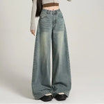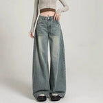 Grijze wide leg jeans dames – high waist spijkerbroek met stoere washed look