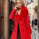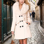 Sabina winterjas met bontkraag en ceintuur – chique en warm voor elegante winterlooks.