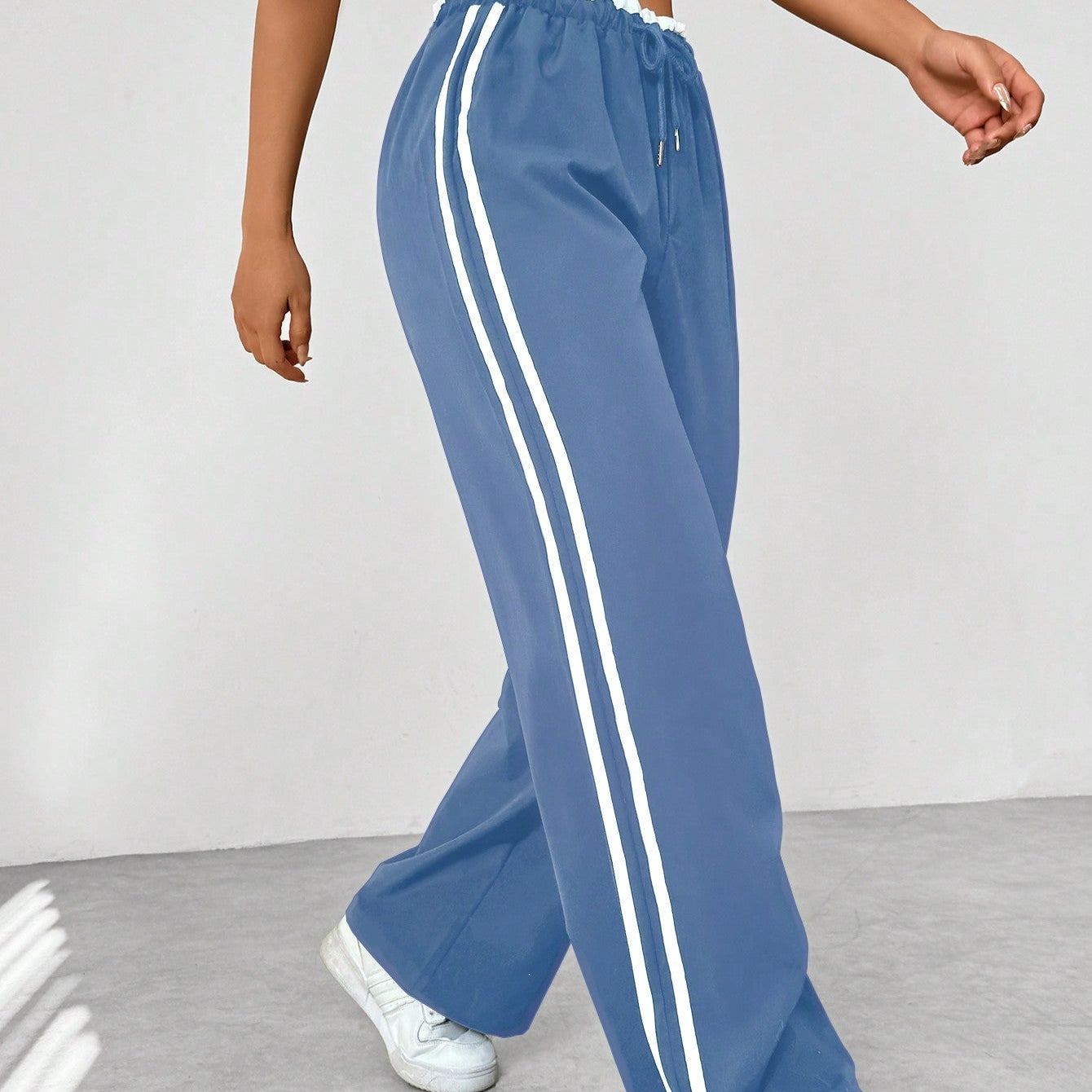 Trend Sportieve Wide-Leg Broek – Comfortabele Streetwear Broek met Strepen