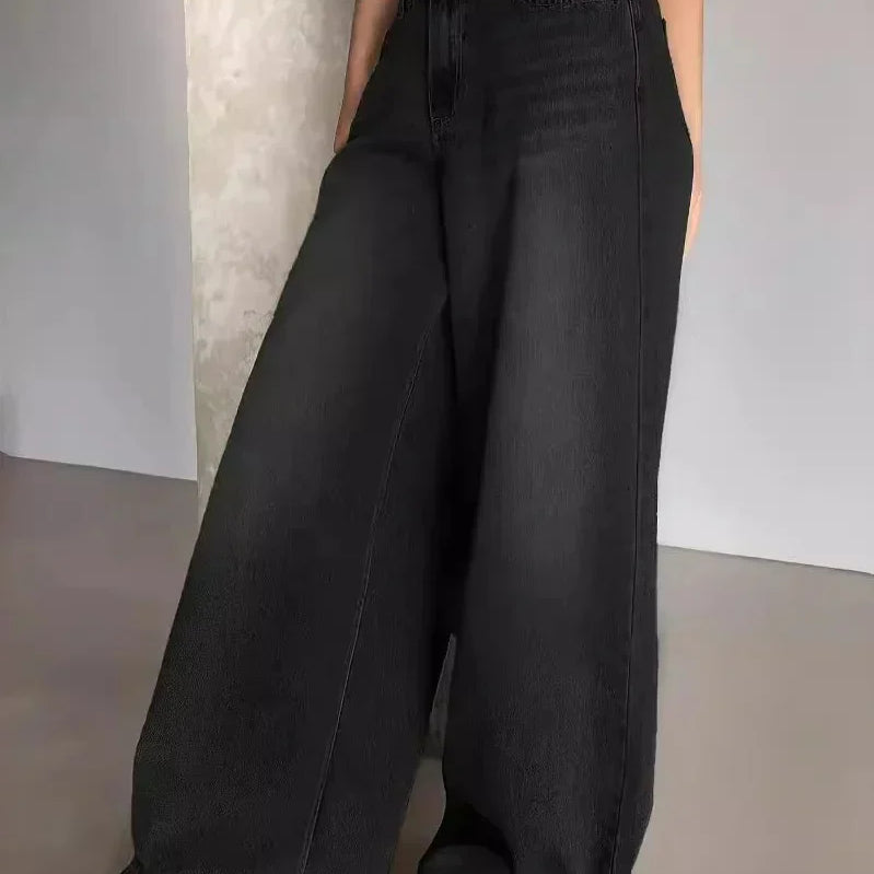 Baggy wide leg jeans dames – high waist oversized jeans in grijs, zwart & blauw