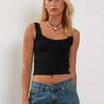 Lea | Romantisch Ribb Tanktop met Kantafwerking