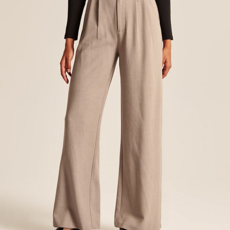 Isabell | Modieuze broek in taupe met wijde pijpen