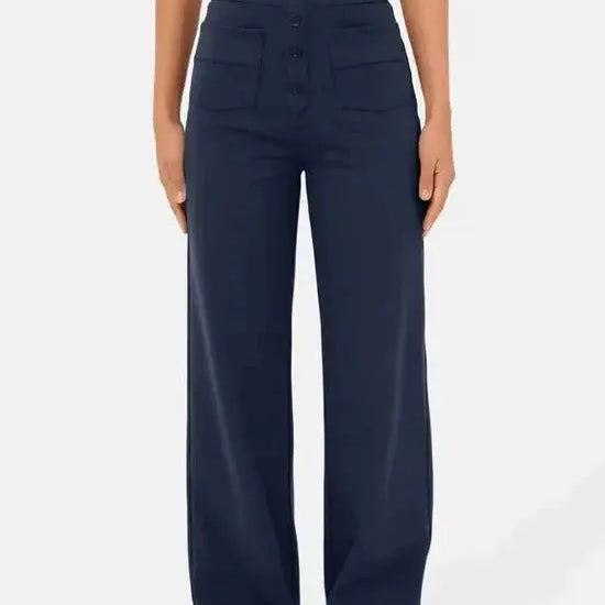 Hannah | Wijde Pijpen Hoge Taille Broek Met Voorzakken