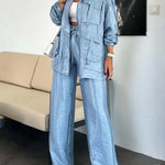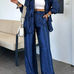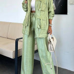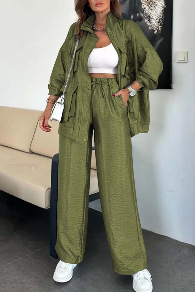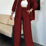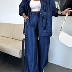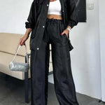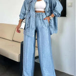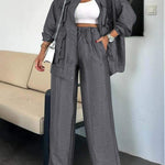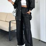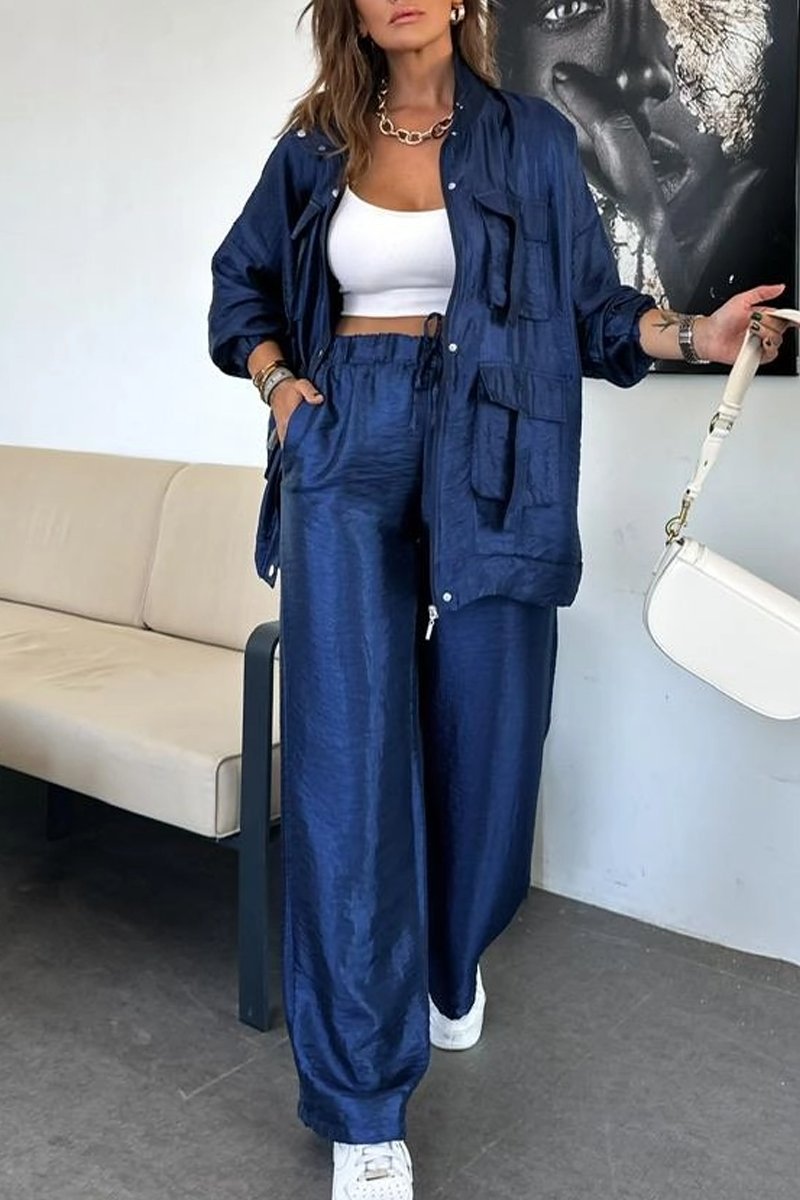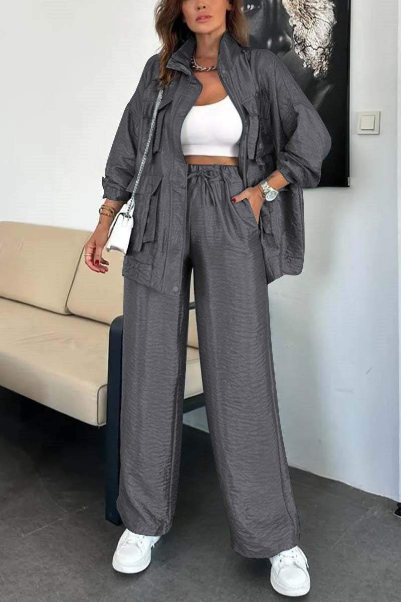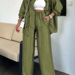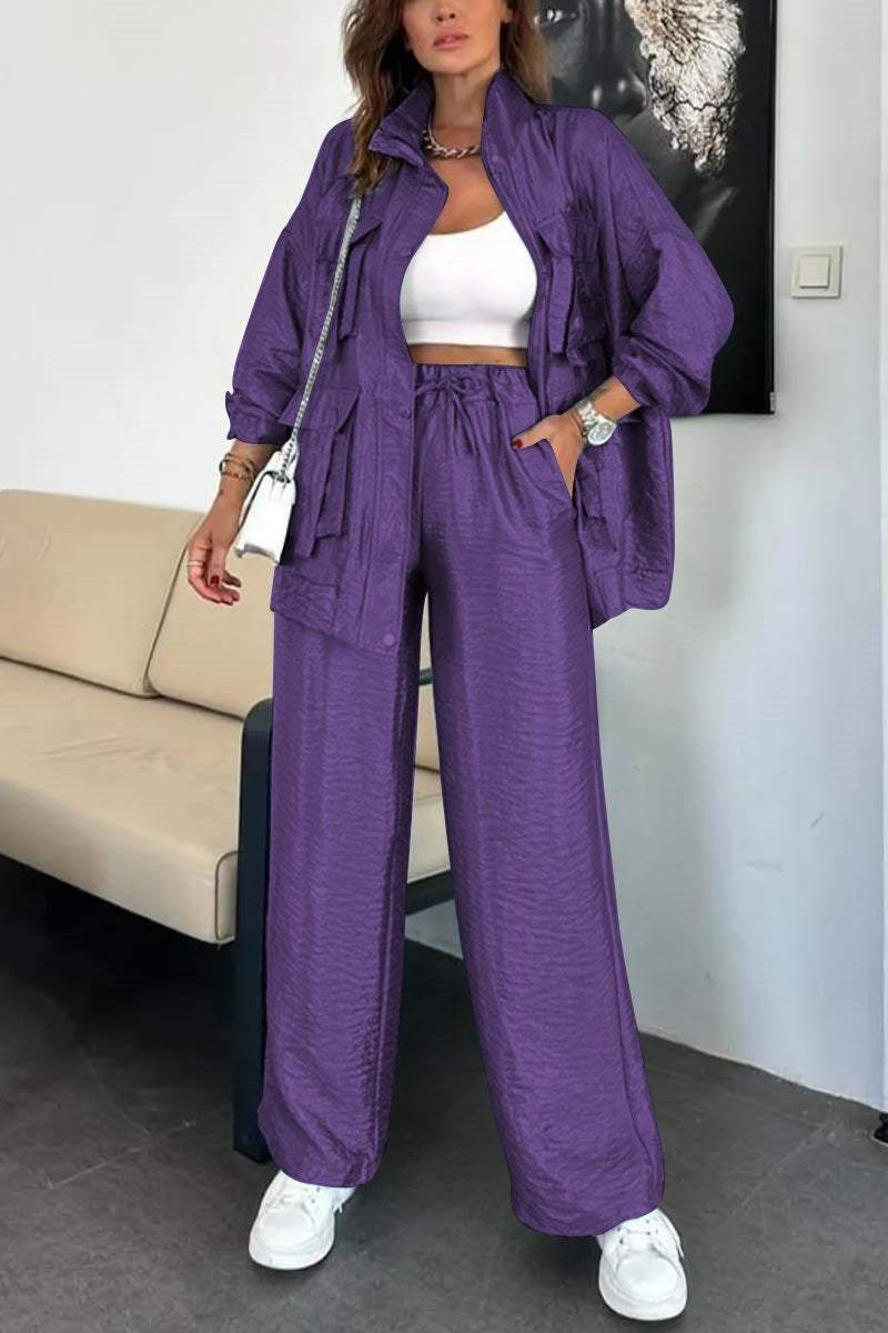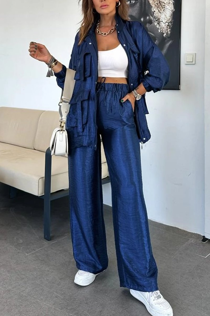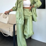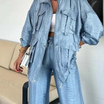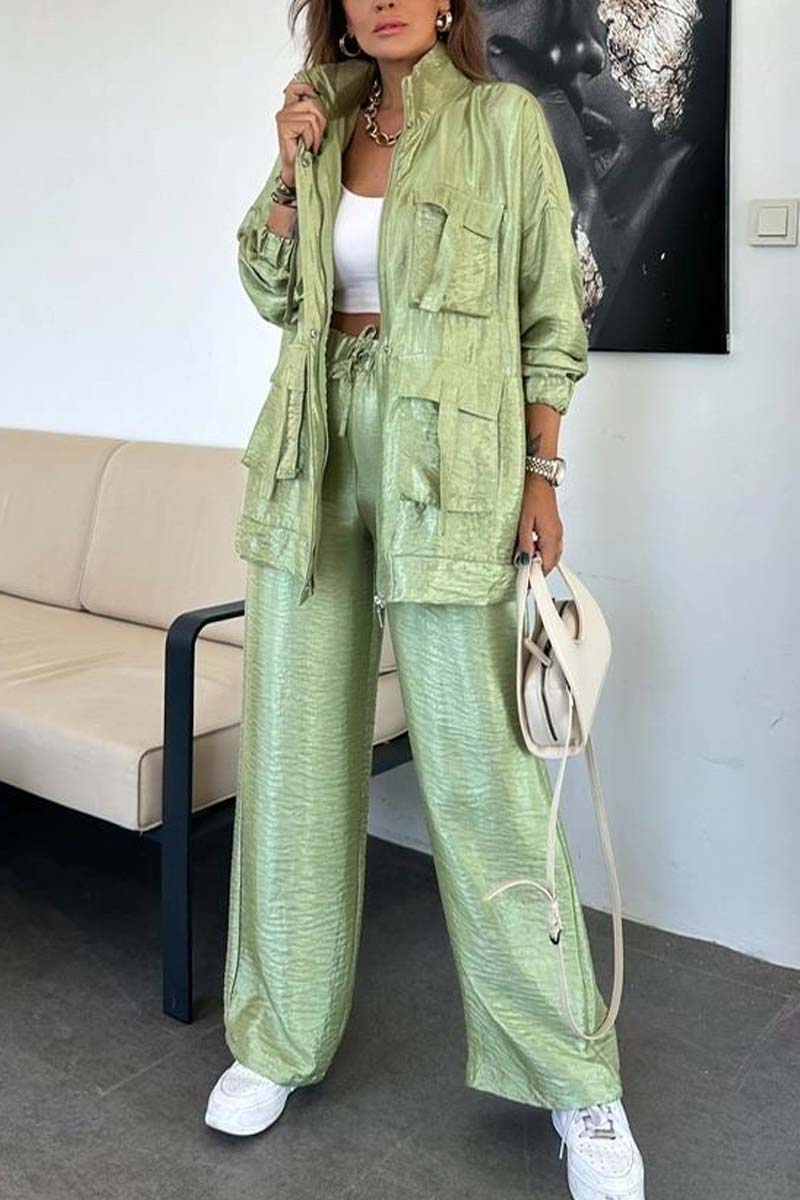 Met onze Maaike™ Glinsterende Tweedelige Set combineer je moeiteloos stijl en comfort. Het ontwerp met meerdere zakken biedt praktische opbergruimte zonder in te boeten aan elegantie.