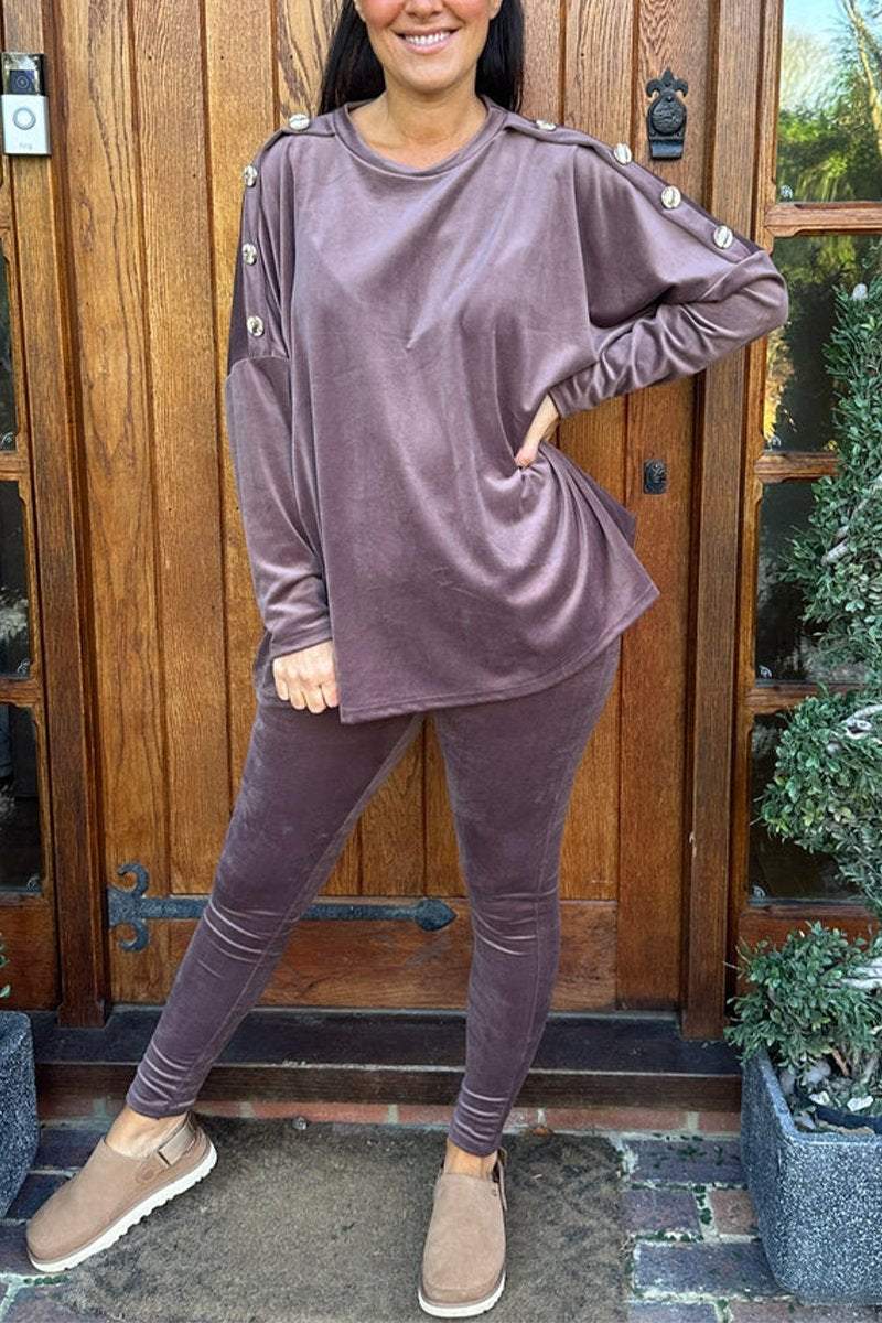 De Nicole™ Stijlvolle Tweedelige Set biedt de perfecte oplossing. Draag deze set naar kantoor, informele bijeenkomsten of zelfs een gezellig diner. Met een zachte suède stof, blijf je niet alleen warm, maar voel je je ook stijlvol en zelfverzekerd.