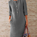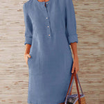 Ben je op zoek naar een jurk die zowel comfortabel als stijlvol is? De Paula™ Elegante Zomerjurk is precies wat je nodig hebt. Gemaakt van ademend katoen en linnen, biedt deze jurk het ultieme comfort, ongeacht het seizoen.