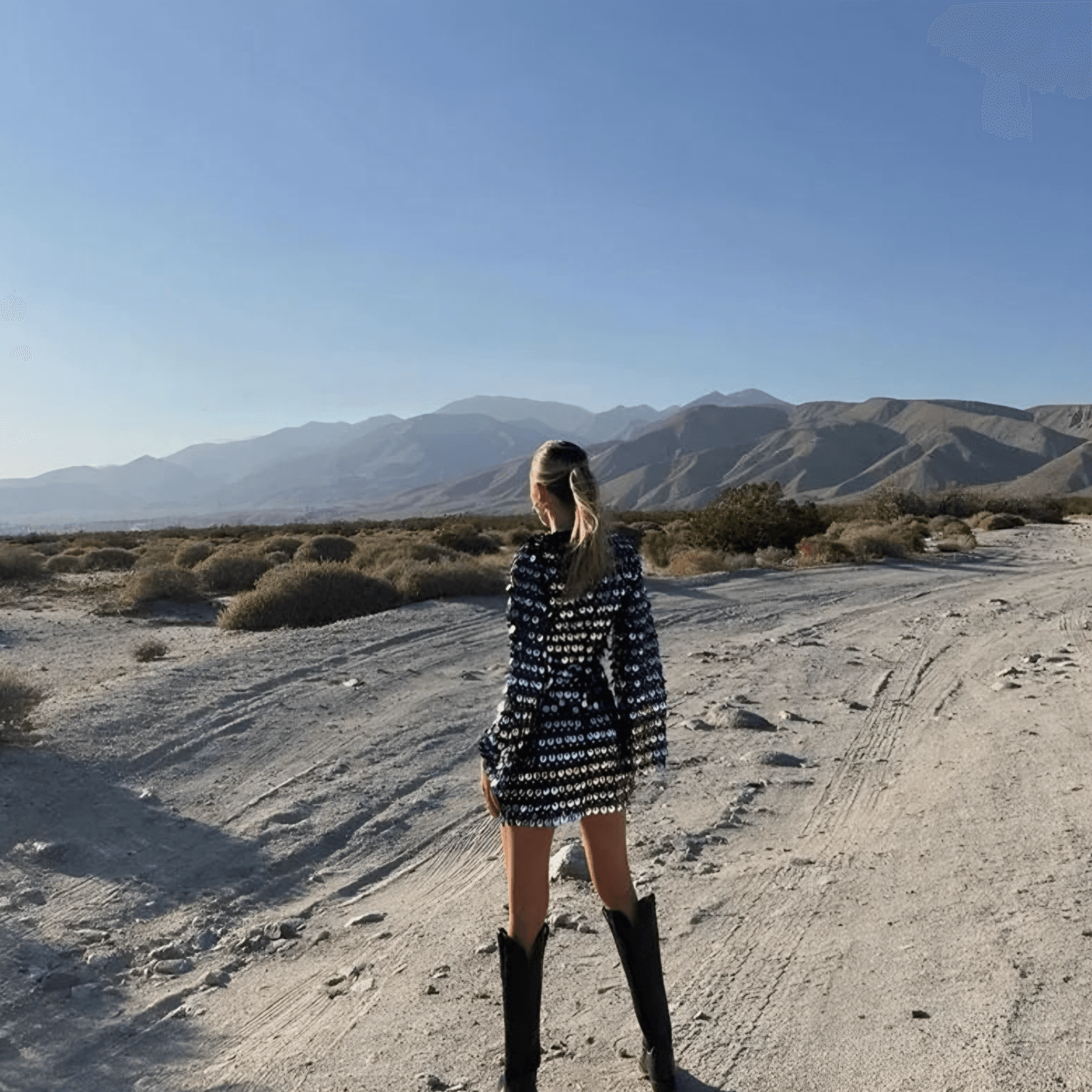 Het Beatrice Pailletten Minikleed is een absoluut statement-stuk voor glamoureuze optredens en trekt met zijn glanzende paillettenontwerp alle blikken naar zich toe. De strakke, fonkelende pailletten zorgen voor een luxe, opvallende uitstraling, terwijl de figuuraccentuerende snit met taille-cut-out en ring-detail de silhouet perfect benadrukt. De lange mouwen geven het kleed een elegante toets, terwijl de minilengte zorgt voor een moderne, verleidelijke uitstraling. Ideaal voor exclusieve feesten, speciale evenementen of als blikvanger op de dansvloer.