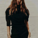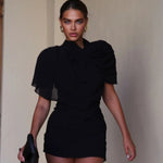 Carmen | Zwart Drapé Minikleed met Hoge Schouderpartij