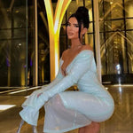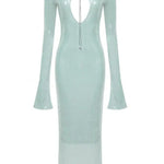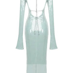 Maya | Spitzen Front Lange Mouwen Mintgroene Glitters Jurk Dames