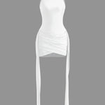 De Vera Minijurk verenigt tijdloze elegantie met moderne raffinage. De hoge halslijn zorgt voor een chique silhouet, terwijl de kunstzinnige drapering en de lange stoffen banden een unieke, dramatische uitstraling creëren. Deze jurk is perfect voor stijlbewuste vrouwen die houden van luxe details en een flatterende pasvorm – ideaal voor elegante avondevenementen, dinerafspraken of exclusieve evenementen.