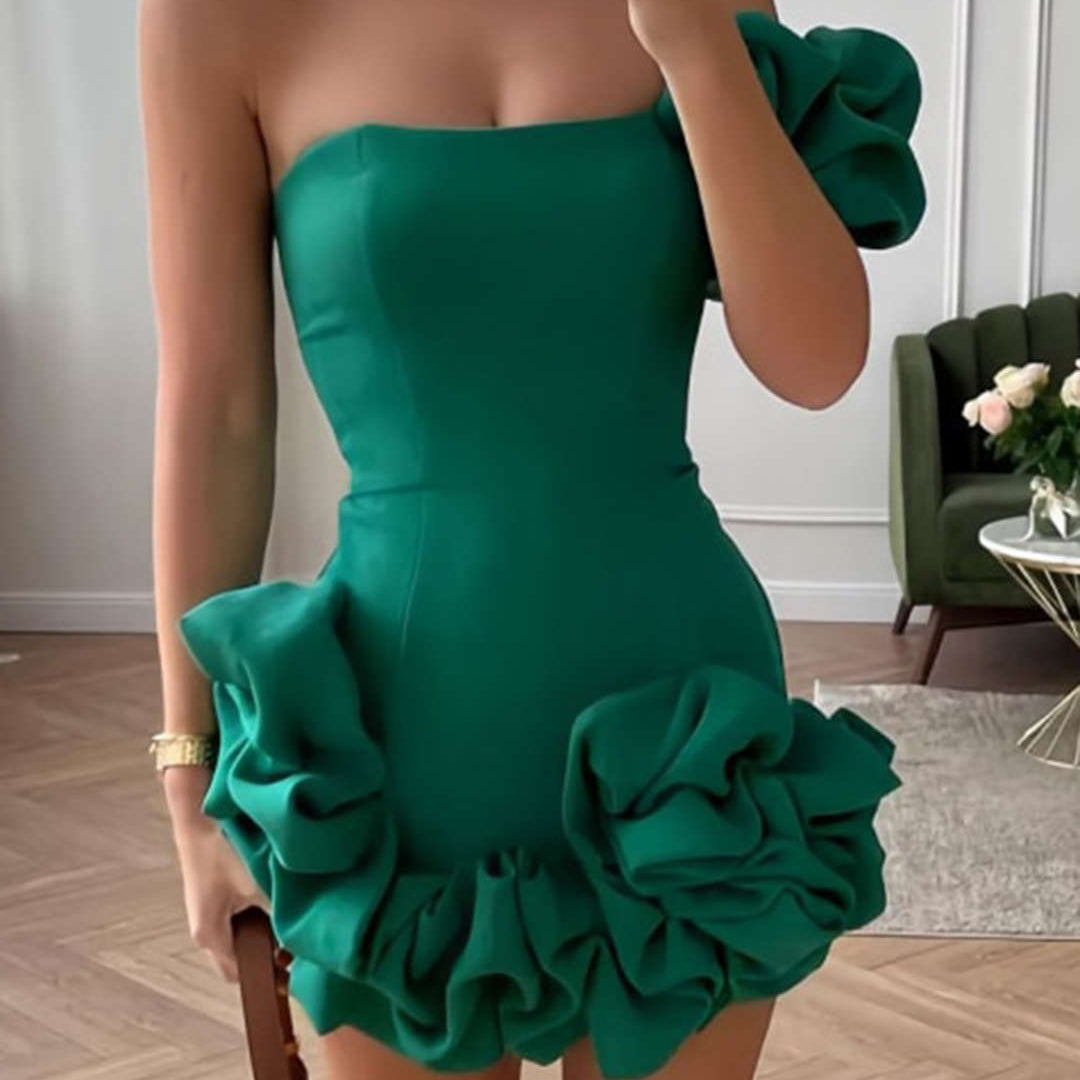 Valeria | One-Shoulder Bodycon Rimpeljurk – Elegante verfijning met een speelse touch